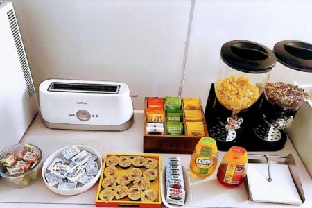 Le petit-déjeuner n’est pas inclus par défaut, mais il est proposé en option sous forme de buffet continental avec produits locaux (viennoiseries, confitures bretonnes, boissons chaudes, jus de fruits…).